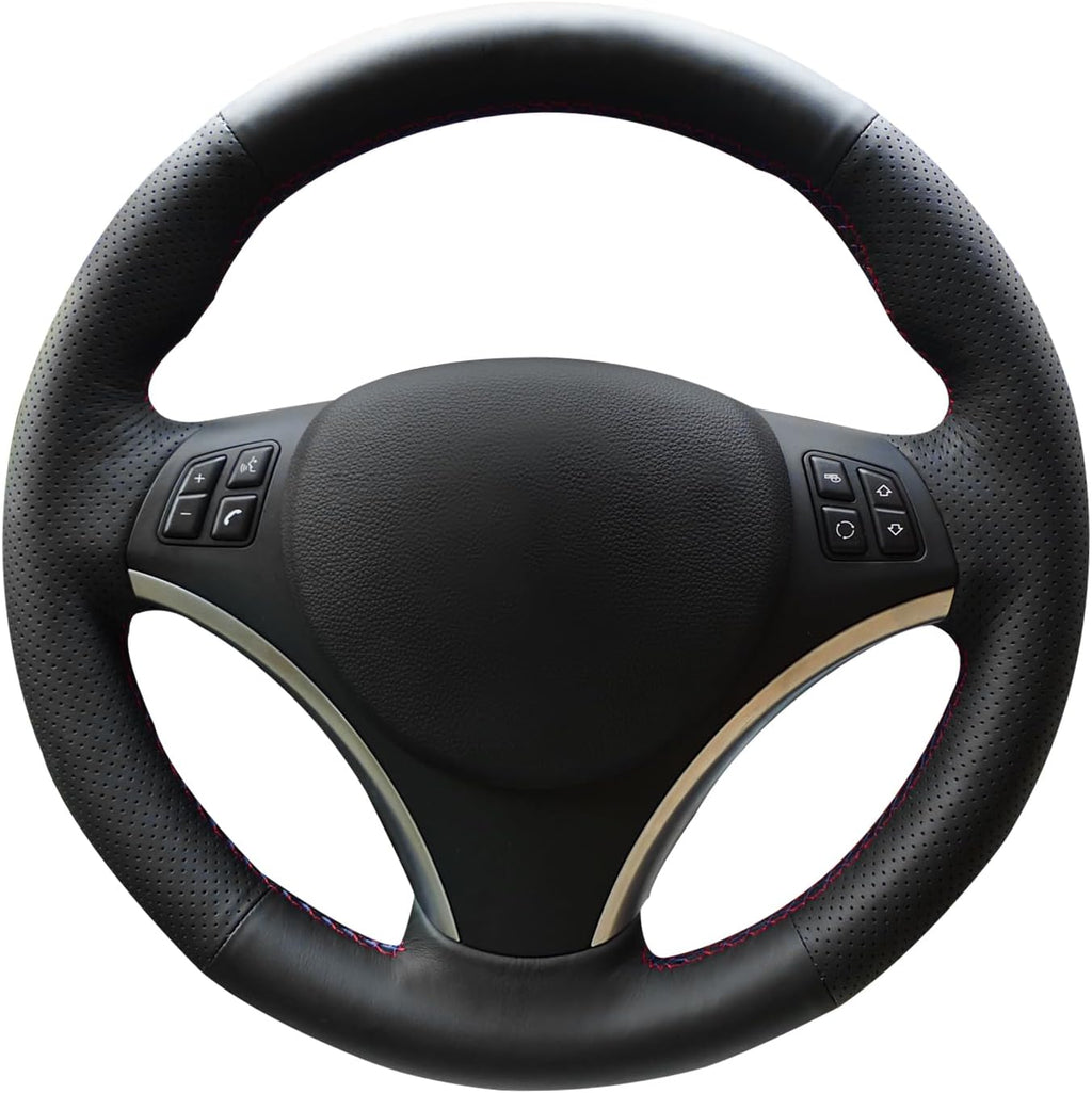 MEWANT Steering Wheel Cover for E90 320i 325i 330i 335i E87 120i 130i 120d Hand Sewing Black Artificial Leather Car Steering Wheel Covers Wrap
