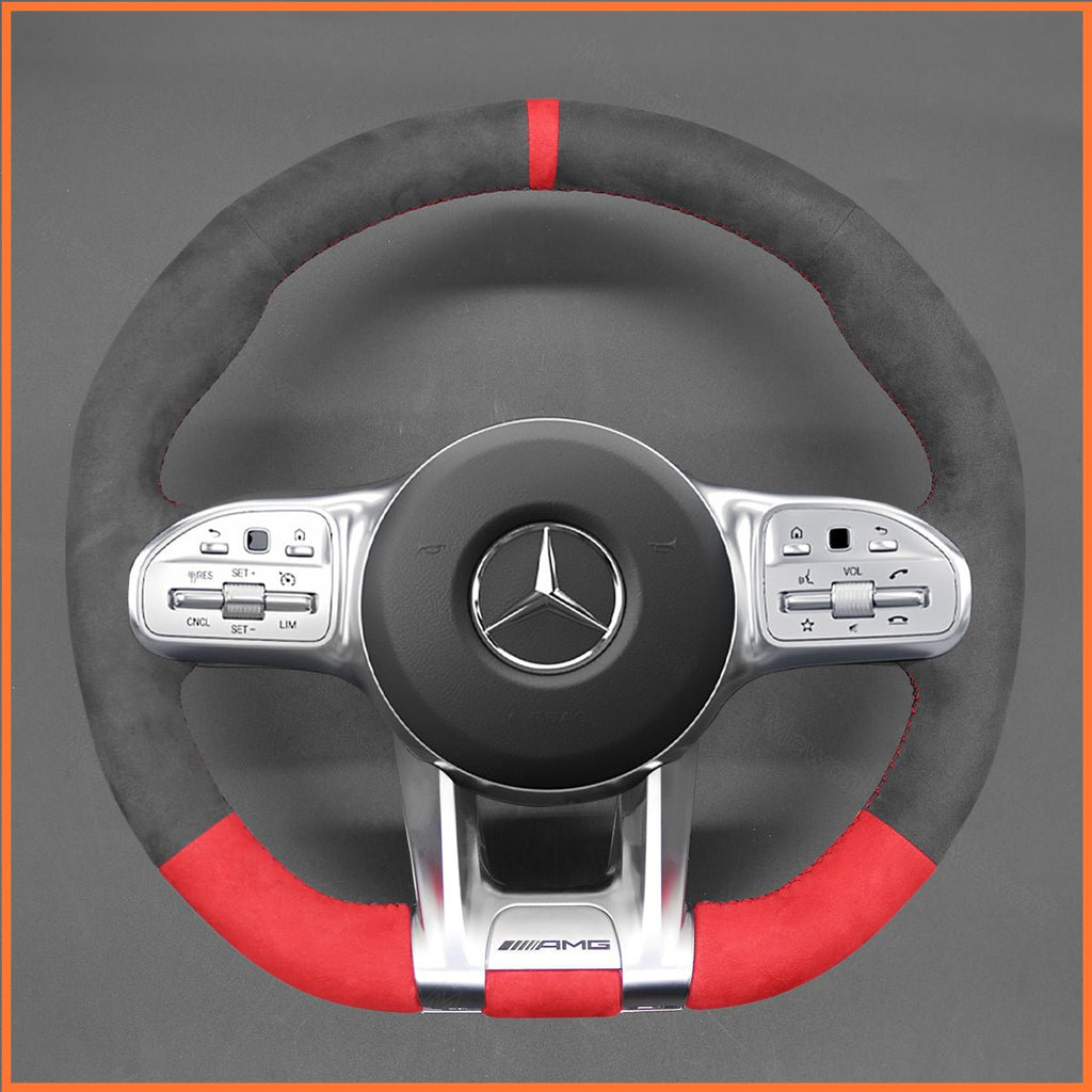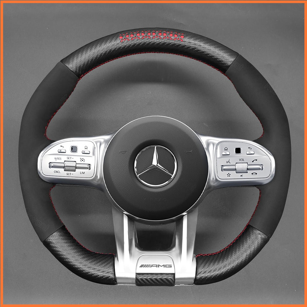 MEWANT Steering Wheel Cover for Mercedes-Benz AMG A35 (W177/V177) / A45 (W177/V177) / C63 (W205) / CLS53 (C257) 2018-2021 / AMG E53 (W213