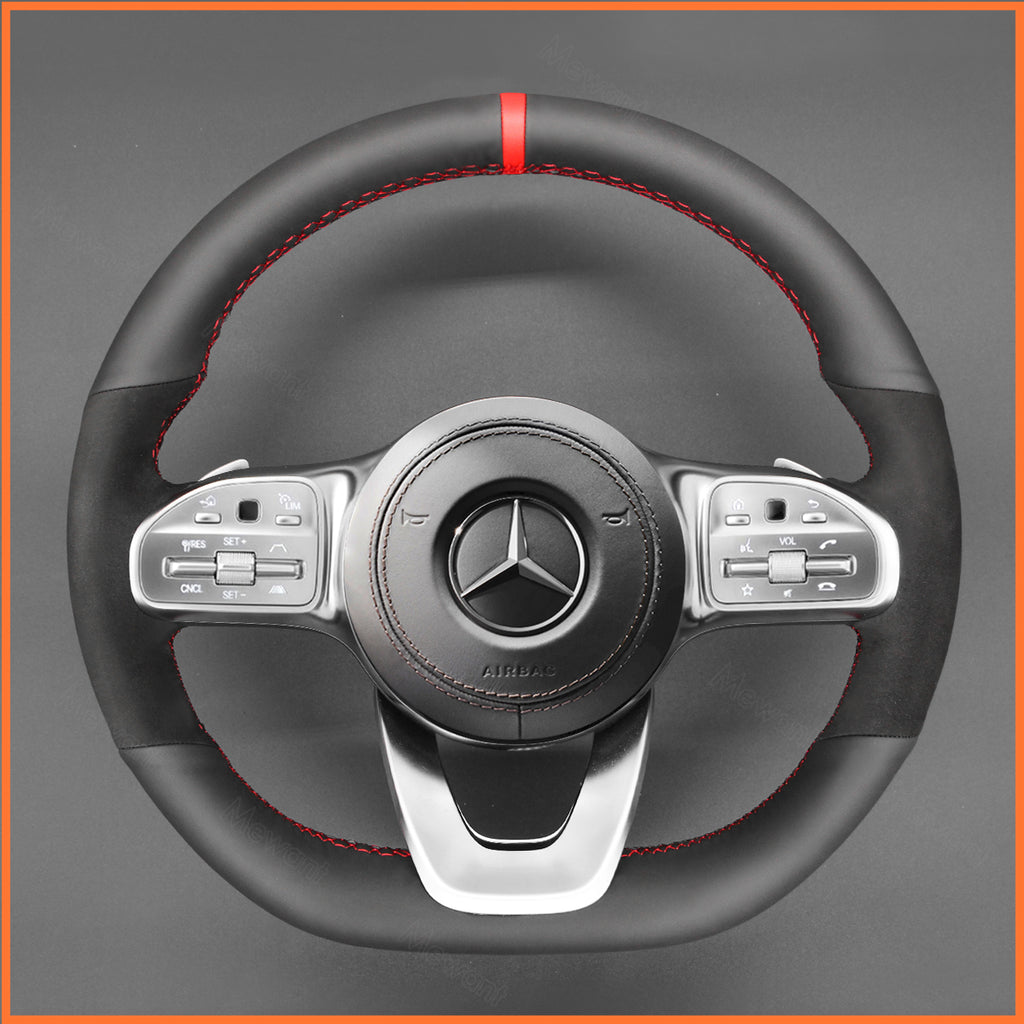 MEWANT Steering Wheel Cover for Mercedes-Benz AMG-Line AMG-Sport / A-Class (W177/V177) / B-Class (W247) / C-Class (C205/A205) 2018-2023