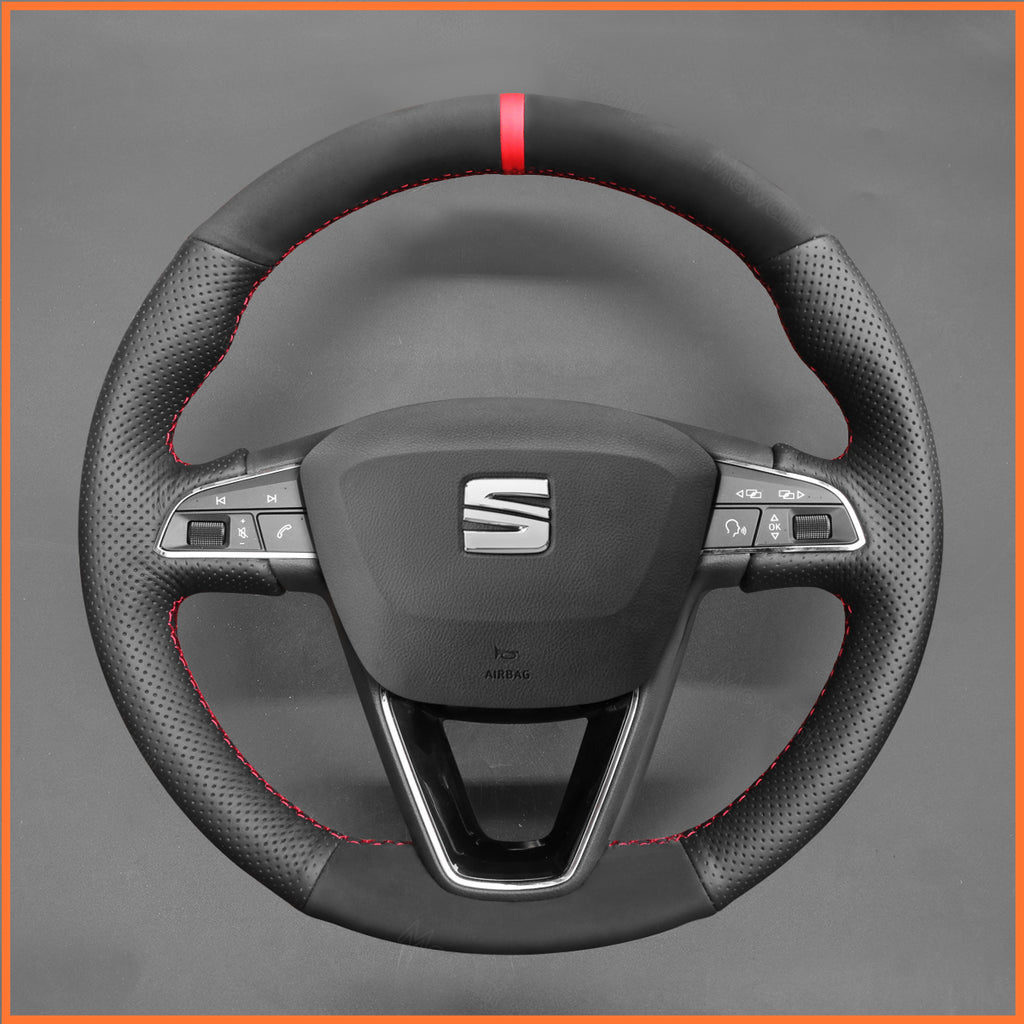 MEWANT Steering Wheel Cover for SEAT Leon (5F) 2013-2020 / Ibiza (6F) 2015-2021 / Alhambra (7N) 2015-2022 / Arona 2017-2021 / Ateca 2016-2020 / Tarraco 2018-2020 / Toledo 2014-2019