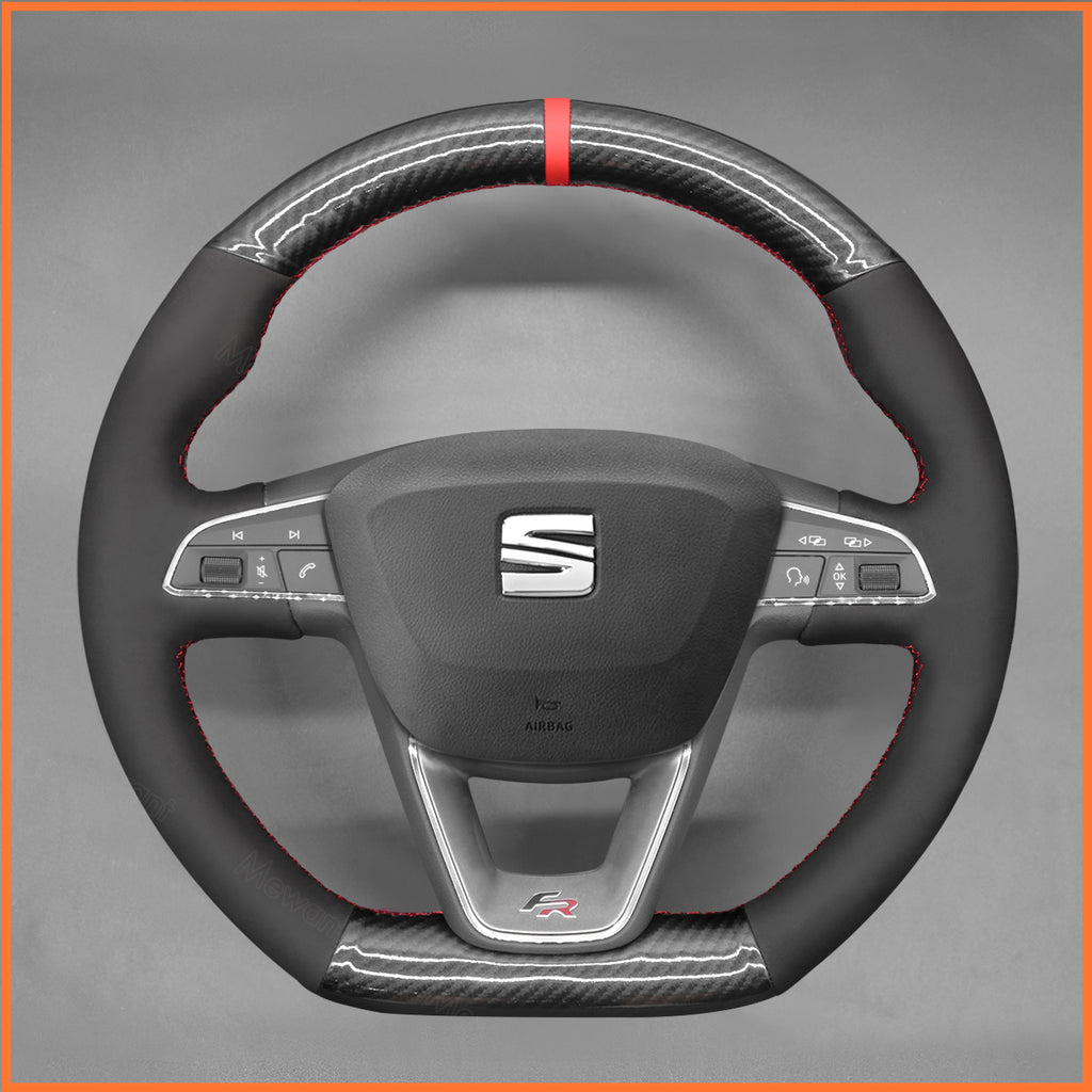 MEWANT Steering Wheel Cover for SEAT Leon 5F (FR|CUPRA) 2013-2020 / Ibiza 6F (FR|CUPRA) 2015-2021 / Alhambra (FR Line) 2015-2022 / Arona (FR Line) 2017-2021 / Ateca (FR-Line) 2016-2020 / Toledo FR 2014-2019 CUPRA Ateca 2018-2020