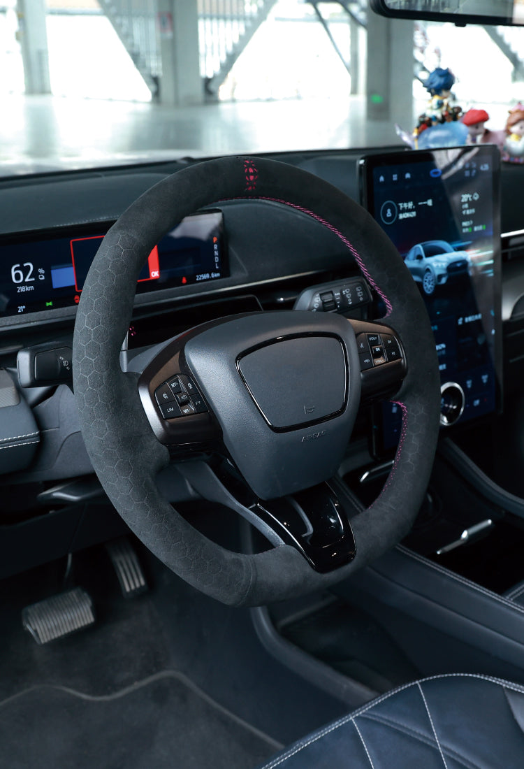 • Funktionalität pur: Wo Sie den besten Griff benötigen, liegt das haptische Alcantara – für maximale Kontrolle.